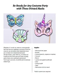 Whether it’s trunk-or-treat or a masquerade ball that has you needing a costume at the last minute, our printable mask templates have you covered. Just download and print the eye masks, color them in, cut them out (supervise the little ones with any cutting), paste them onto cardboard and presto! You’ve got a unicorn, butterfly and triceratops ready to go.