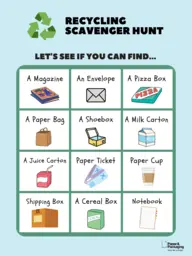 Plan a scavenger hunt for paper-based recyclable items. Start by downloading the recycling scavenger hunt printable, which encourages children to recycle paper products in an interactive and engaging way. Once collected, deposit the items in the correct bin.